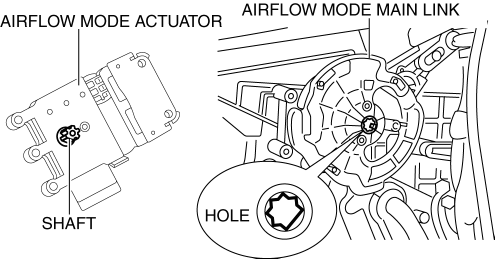 3. Align the airflow mode main link installation hole with the shape of the airflow mode actuator shaft, and install while holding the airflow mode main link.