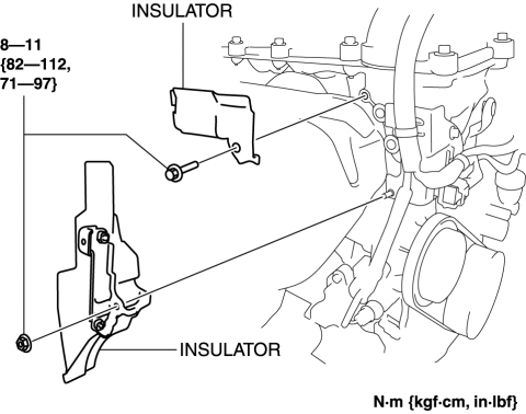 1. Disconnect the negative battery cable.. 2. Remove the plug hole plate.. 3. Remove the air cleaner and air hose as a single unit.. 4. Disconnect the high pressure fuel pump connector. 5. Disconnect the harness clip as shown in the figure. 6. Remove in the order indicated in the table ...