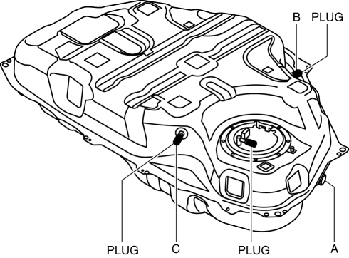 a. Plug the fuel pump unit pipe, ports B and C.