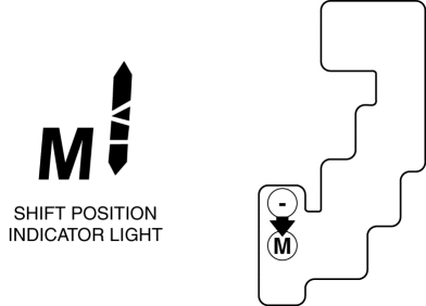 f. When starting idle up, shift the selector lever from the M- position to M position and verify that shift position indicator light flashes two times