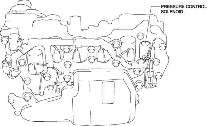 The pressure control solenoid adjusts the pressure control solenoid pressure and controls the line pressure based on the control signal from the TCM.