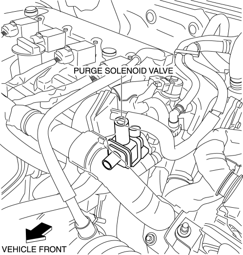 When the purge solenoid valve is open, evaporative gas flows from the charcoal canister to the intake manifold side.
