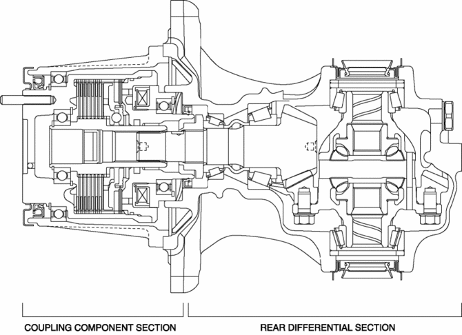 A rear differential with an integrated coupling component has been adopted, reducing size and weight.