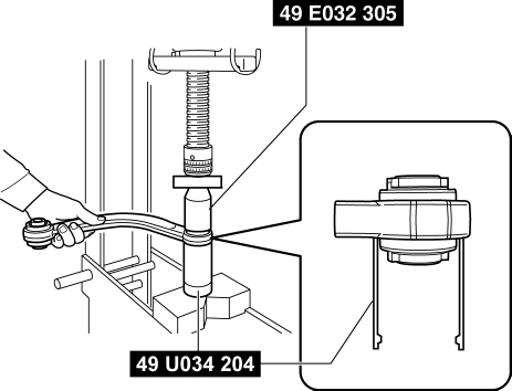 4. Press down on the rear crossmember component slowly until the rear upper arm inside installation bolts can be removed using a jack.