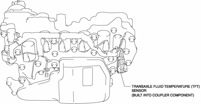 The transaxle fluid temperature (TFT) sensor is integrated with the coupler component and installed to the control valve body.