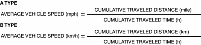 The instrument cluster calculates the average vehicle speed based on the cumulative traveled distance and cumulative traveled time from connecting the battery or resetting the average vehicle speed. In addition, the calculation results are updated every 10 s.